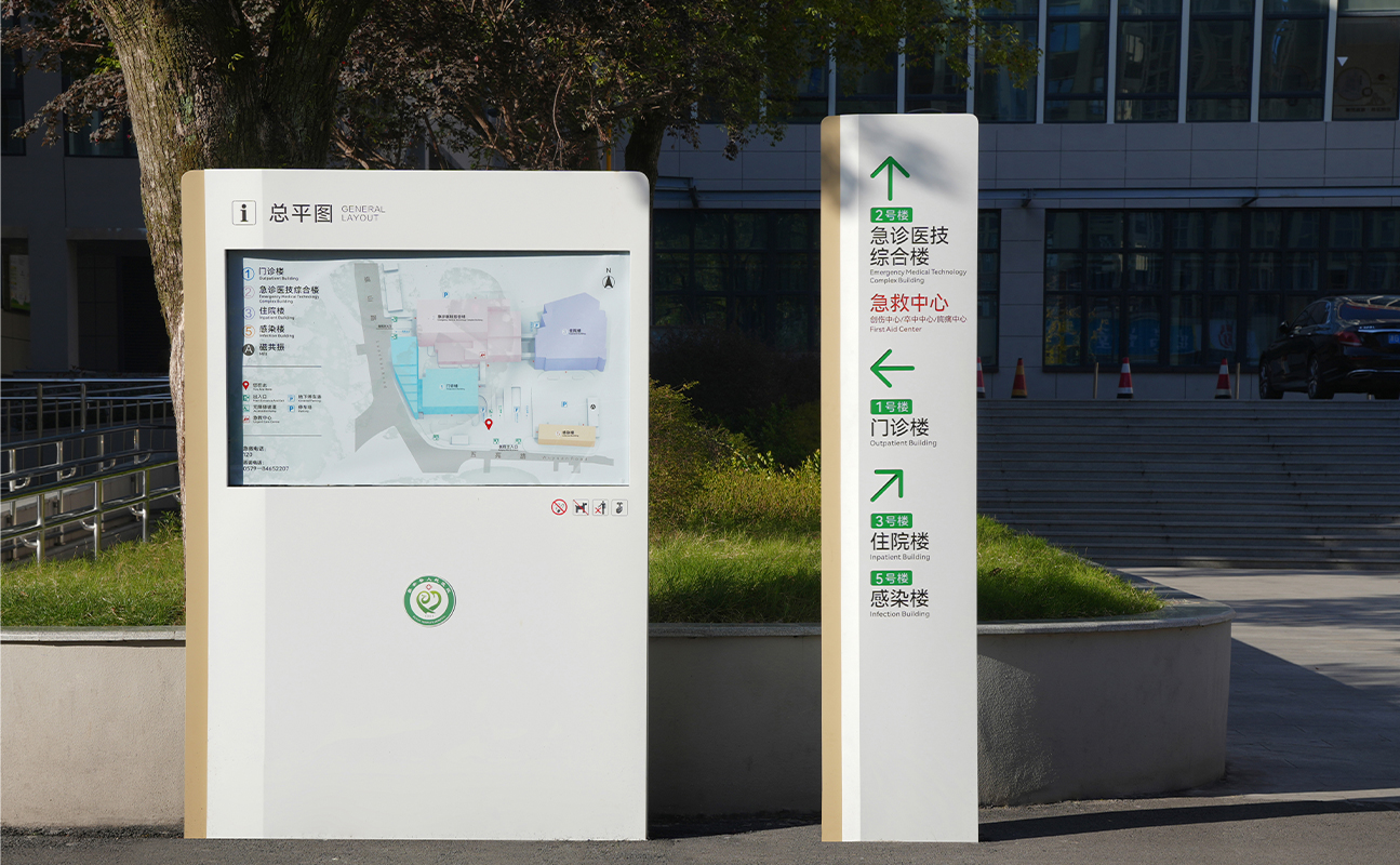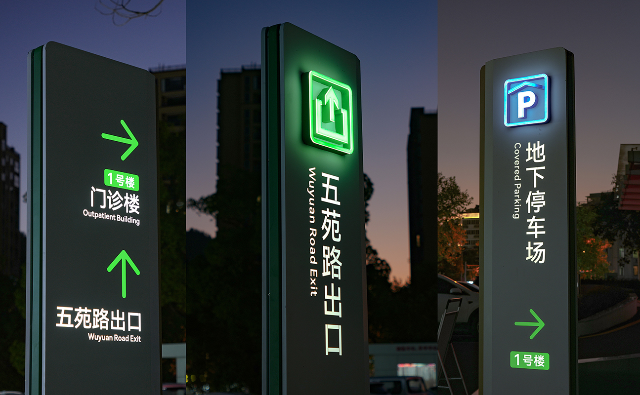 In the design of the wayfinding system, we adopt a simple and lightweight approach to create a clear and soft visual hierarchy. The design incorporates the natural imagery of Pan'an – "surrounded by mountains on three sides and bordering water on one side" – into its form. By using wooden materials and building a green medical space, we shorten the distance between humans and nature. The simple and gentle texture reflected in every detail helps create a warm, soothing and healing atmosphere for the medical environment.