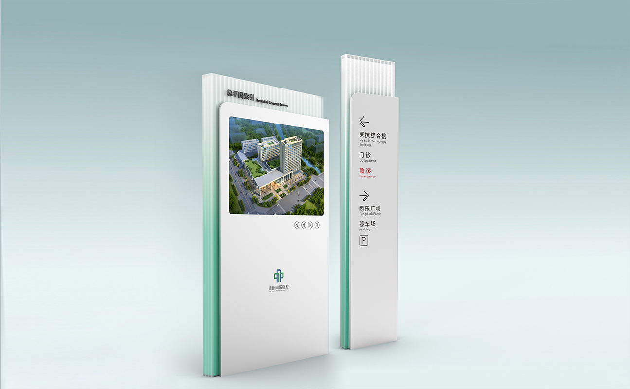 The wayfinding system adopts a double-layer structure of transparent Colorboard, featuring replaceable content to flexibly adapt to department adjustments. The core image sign is uniquely designed, breaking away from traditional forms while achieving both recognition and decorative value. It implements the concept of "wayfinding elements as landscape ornaments, and landscape ornaments as wayfinding tools," seamlessly integrating with the surrounding scenery. Overall, clean lines create a serene and transparent environment, embodying an exquisite, warm, and friendly culture that balances practicality with user experience.