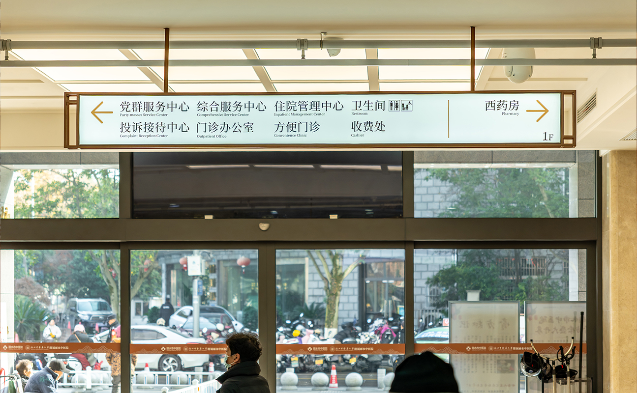 With the heritage of "Oriental Song Dynasty Charm", the overall design employs poetic Song-style lines to integrate gentle order with minimalist modernity. Through transparent materials and neat shapes, the wayfinding system creates a soothing and elegant visual atmosphere in the medical space, conveying the humanistic care of safety and warmth. The metal outer frame is sturdy and wear-resistant, demonstrating professionalism and reliability; the high-transparency new material on the top is lightweight and transparent, balancing aesthetics and visibility. This design achieves the integration of traditional aesthetics and modern medical environment, bringing a healing experience of physical and mental peace to patients.
